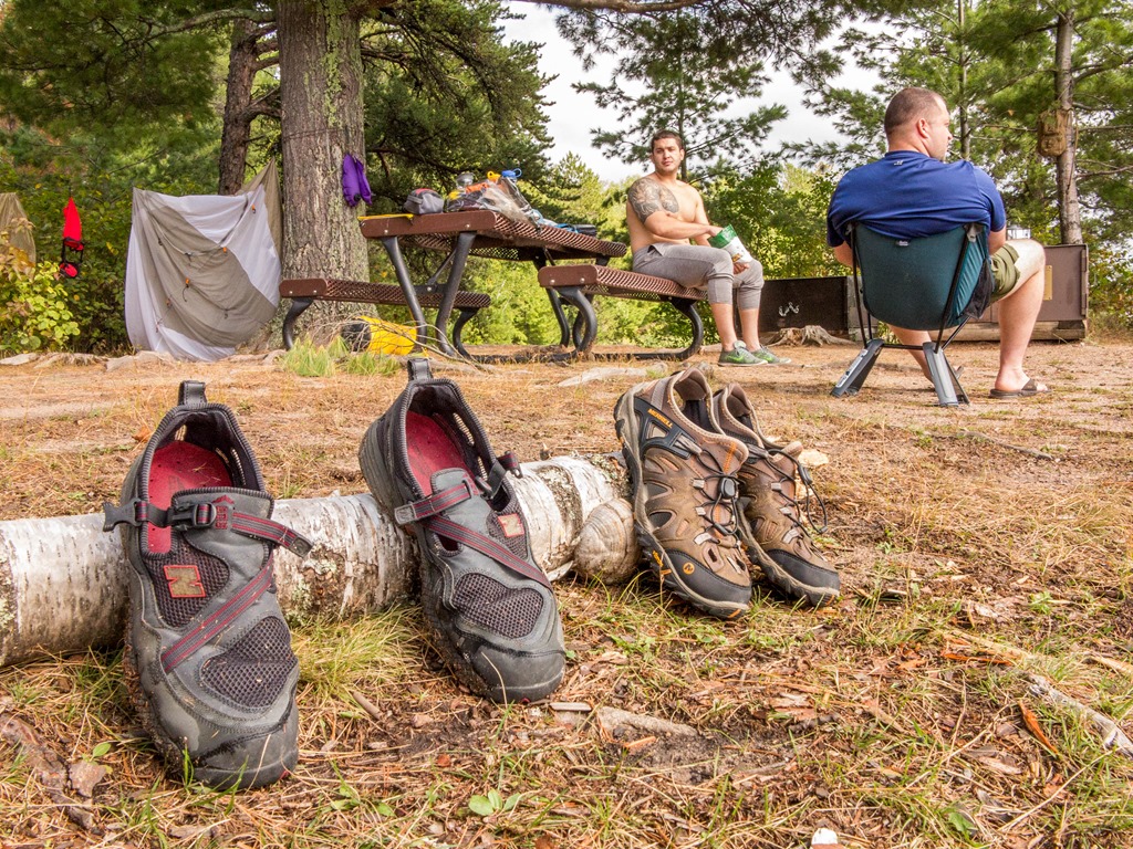 Just off Sexton Island, we rounded Red Buoy 20. Passing Stevens Island, the GPS pointed unobstructed at Namakan Island Campsite N63. We skidded into the sand beach at 1410. After sitting for so long, my unsteady exit landed me butt first in the water, earning a giggly round of applause. The GPS reported a 6.2-mile paddle in two hours, with a total trip time of more than 2.5 hours. I didn’t think lunch lasted that long.