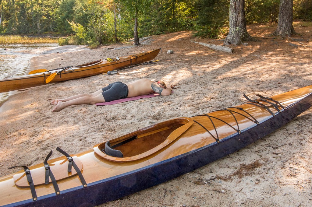 While Kyle napped on the sand, I waded into Pike Bay for a bath and Braden went to hang his hammock. In the middle of my refreshing soap-free scrub, Braden slid back into his boat with his fishing pole. “I forgot my tree straps,” he grumped. He improvised a paracord replacement, and I said we could stop for them on our way back the day after tomorrow.